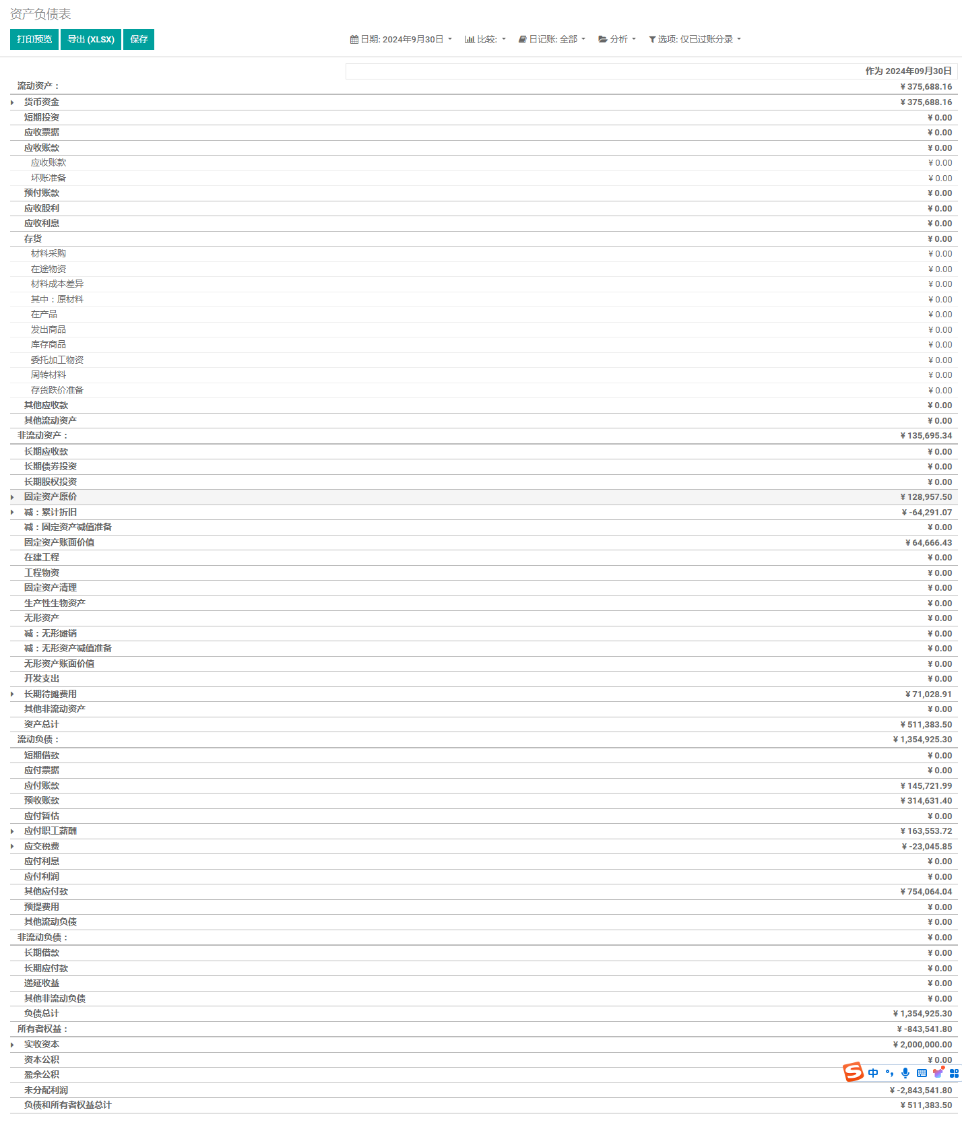 资产负债表