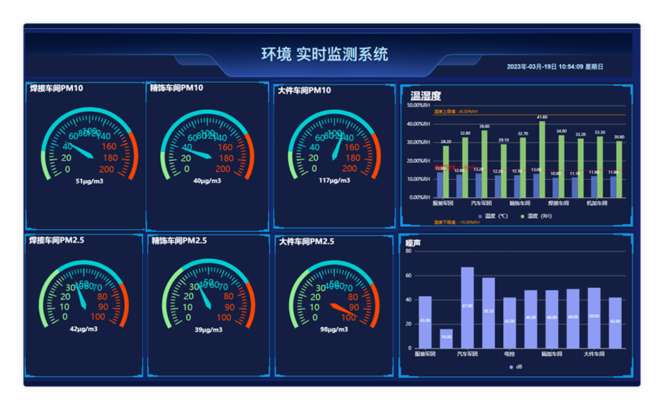 通过对各车间进行全方面的数据检测、实时掌握车间状态是否处于安全指数之内。