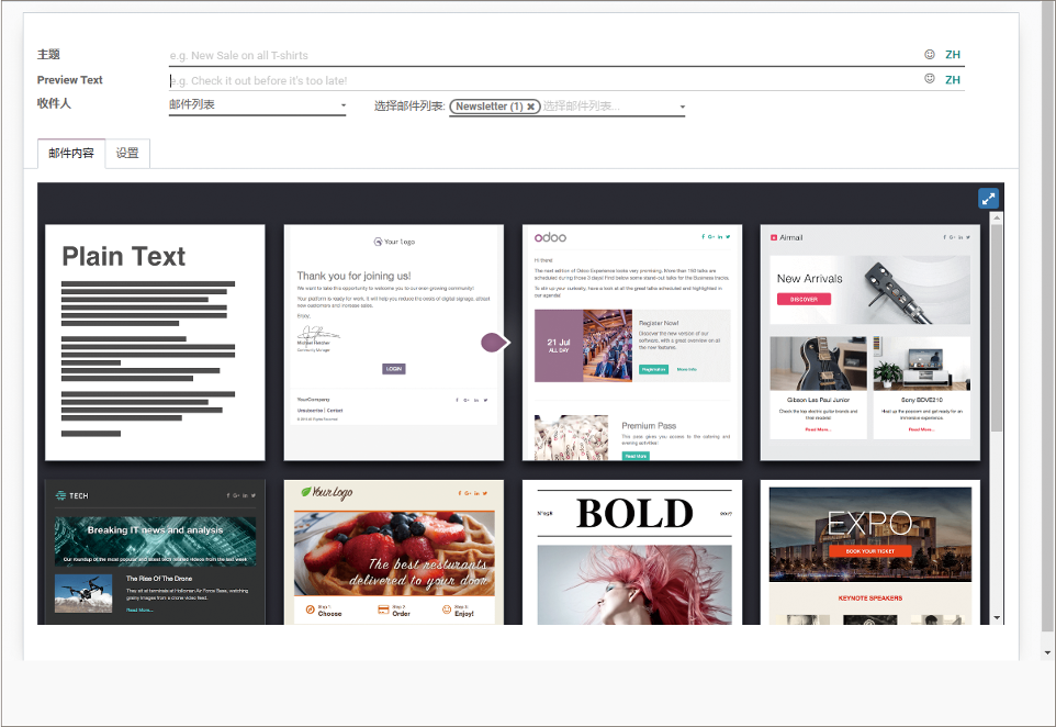 系统提供不同类型的邮件模板,业务员可以自主选择进行相关的营销工作。