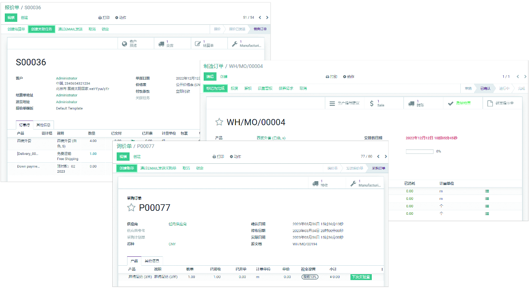 原材料、半成品、成品出入库数据,自动关联到销售、研发、采购、生产、物流等环节,各环节数据同步,减少信息差。