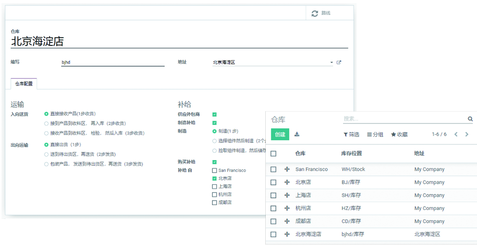通过EDOS系统,轻松管理复杂的多公司仓库,一键设置仓库的运输出入库、补给方式。